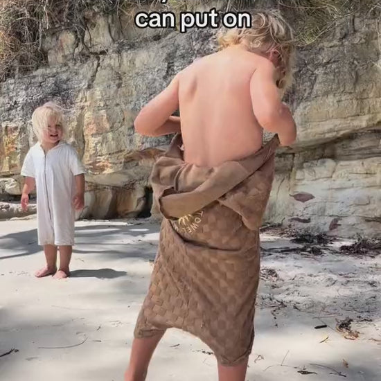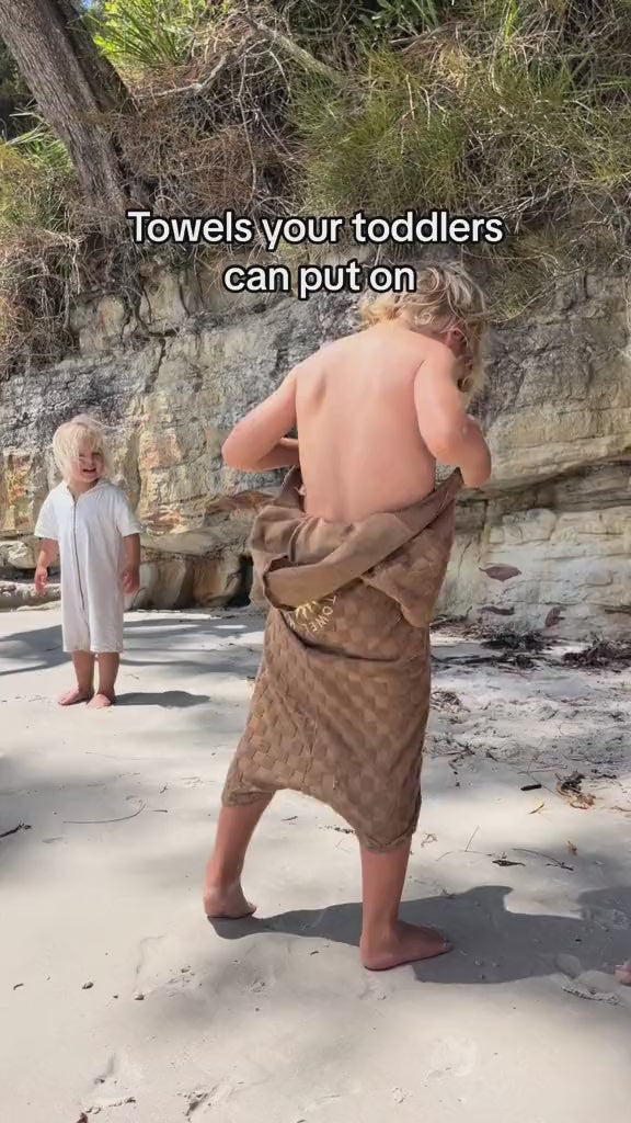 Prevent tantrums and towel dragging with the wearable Jumpsuit Towel - thrown on after a swim & worn all day!