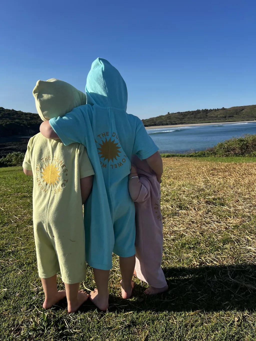 Prevent tantrums and towel dragging with the wearable Jumpsuit Towel - thrown on after a swim & worn all day! 100% OEKO-TEX® Organic Cotton 300GSM.
