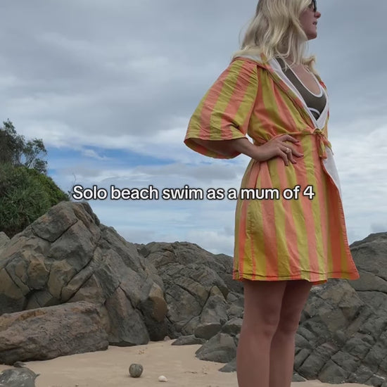 Made from 100% OEKO-TEX® Organic Cotton Terry Towelling our new and improved Women's Robe Towel has been designed for handsfree drying for those busy mums. This beautiful Cotton Terry design is made for women who love a dip. Wake up in the morning, throw it on after a shower, or wear it to and from the beach and cafes over your swim. This unique design is like nothing else on the market. We care about what goes on your skin, and whether it actually dries you and keeps you warm after a swim.